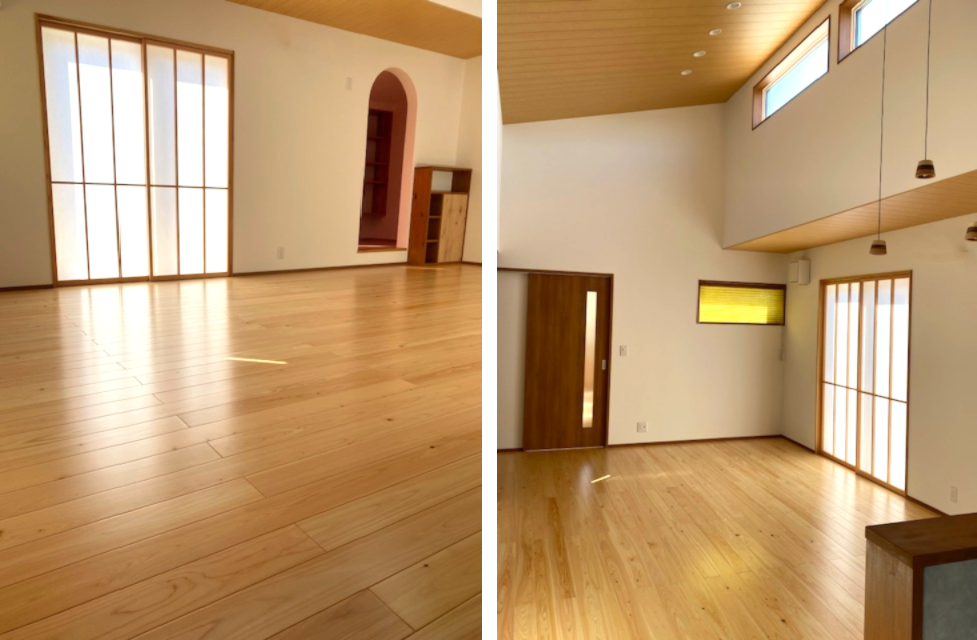 ヒノキ(檜)床暖対応フローリングをご採用いただきました。
