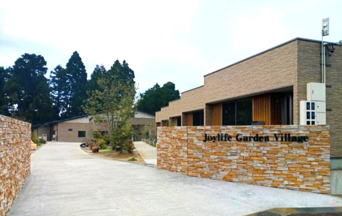 撮影日は、あいにくの曇り空でしたが…ベージュ&オーク色の上品で明るいストーンが緑に映えていました👍(アイアン風の表札もストーンに合っています♪)