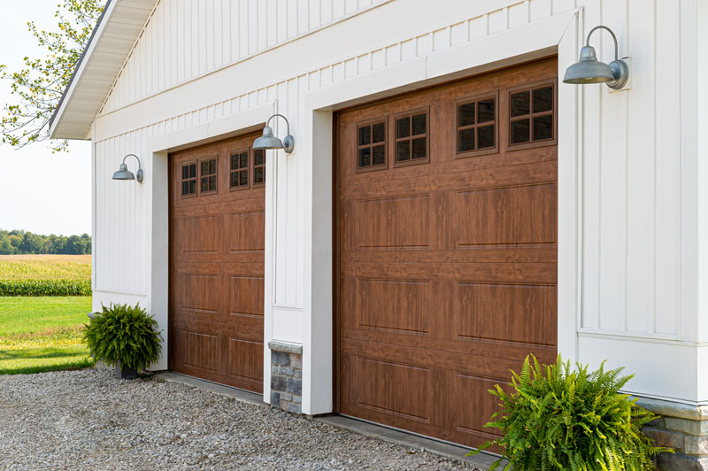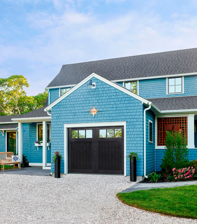 キャリッジハウスのスイングドアのようなガレージドアなど、洗練されたタッチを加えた本物をお楽しみください。