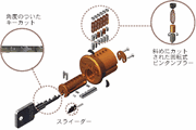 デッドボルトはスマート・キー仕様に変更中です。スマート・キーとは、キーを鍵穴にさす事で鍵を設定するシステムで、鍵同一化を容易に行なえます。